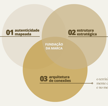 Definição dos principais pilares da marca, atribuição de significado e sentido para o negócio e suas ações. A fundação sobre a qual a sua empresa se sustenta.