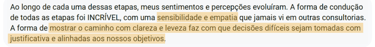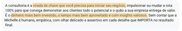 1 mês de acompanhamento e suporte pelo whatsapp depois que a consultoria acabar, para solucionar todas as suas dúvidas na hora de implementar as estratégias de marca